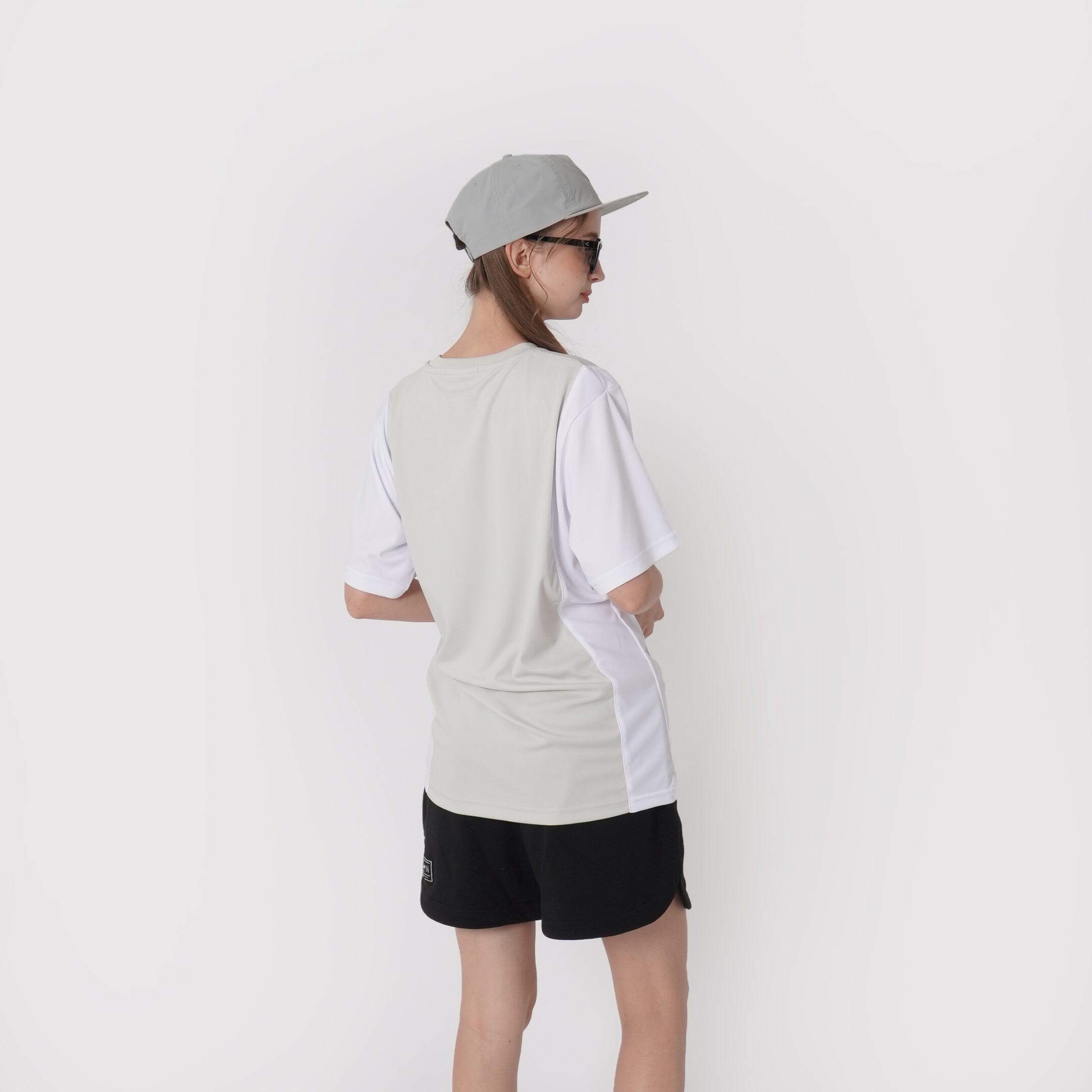 吸水速乾性とUVケア兼備のリサイクルポリエステルを採用したリメイクトレーニングシャツ。セミダル糸を使用することで、透けにくく、テカリやツヤが抑えられ、自然な光沢感のある仕上りに。