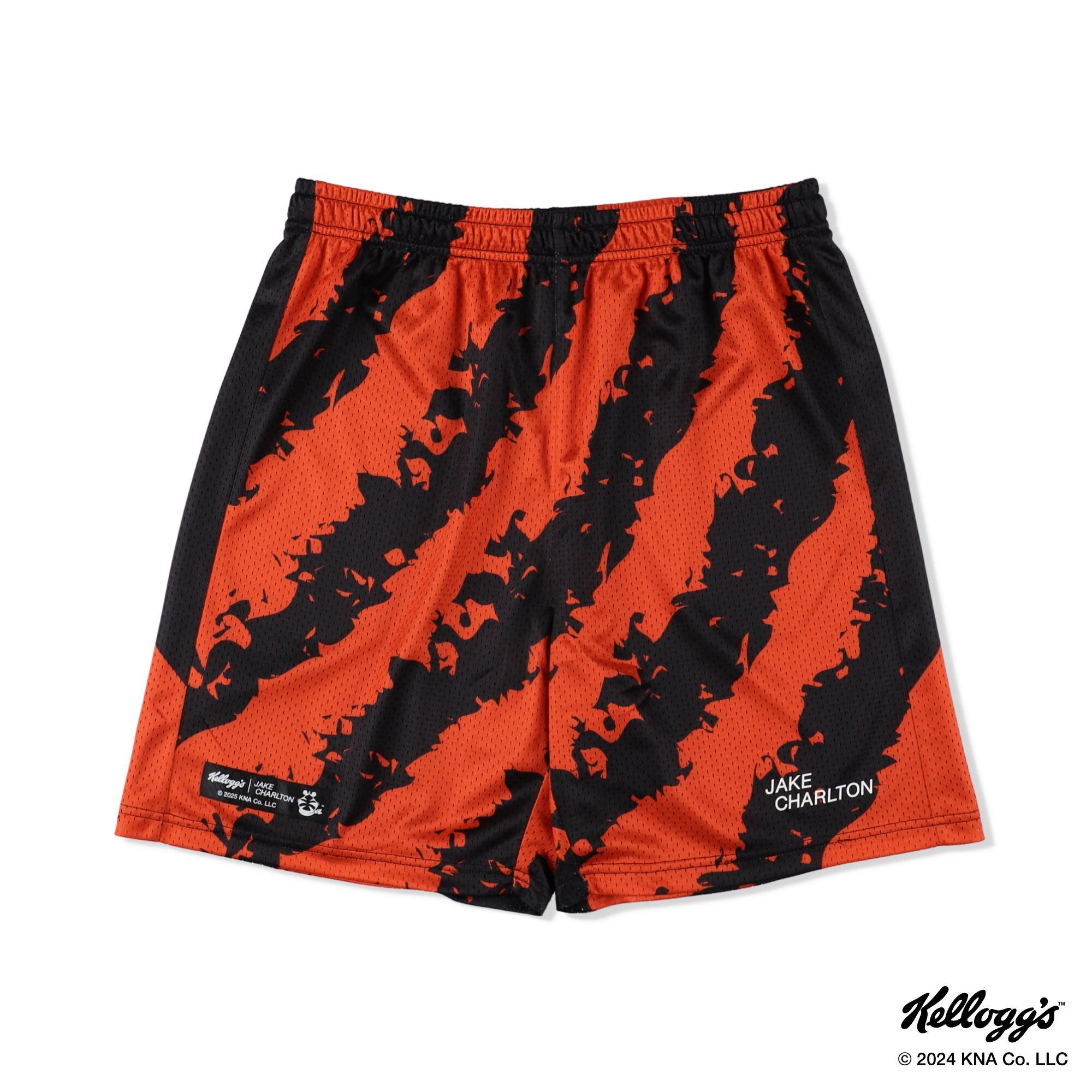 トニー・ザ・タイガーのグラフィックを大胆に用いたダブルメッシュのゲームパンツ。バックには大きめのKellogg'sのロゴがプリントされています。吸水速乾性に優れ、伸縮性があるマットなメッシュ生地を採用。ウエストはゴムバンドとドローコードでアジャスト可能。数量限定で販売。