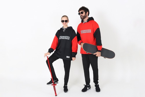 スイッチングスリーブ仕様。胸元には"さすらう人々" の意味を持つ ROVERS (ローヴァーズ )のプリントが施されています。